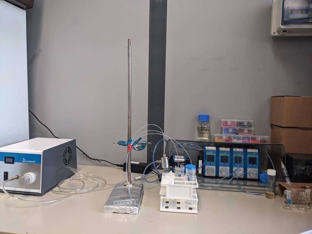 Our microfluidic system consists of an FLPG+ pump connected to Flow EZ™ 1000 mbar pressure controllers. The FLPG+ is a Fluigent’s lab bench-scale compressed air solution, which can produce high-quality air with no maintenance for all types of microfluidic experiments. The Flow EZ™ can generate data rapidly. The microfluidic flow controller supports reservoir sizes from 2 mL to 14 mL falcon tubes. The FLOW UNIT+ is bidirectional microfluidic flow sensor compatible with the pressure controllers that allows to monitor or control the system by flowrate instead of pressure.